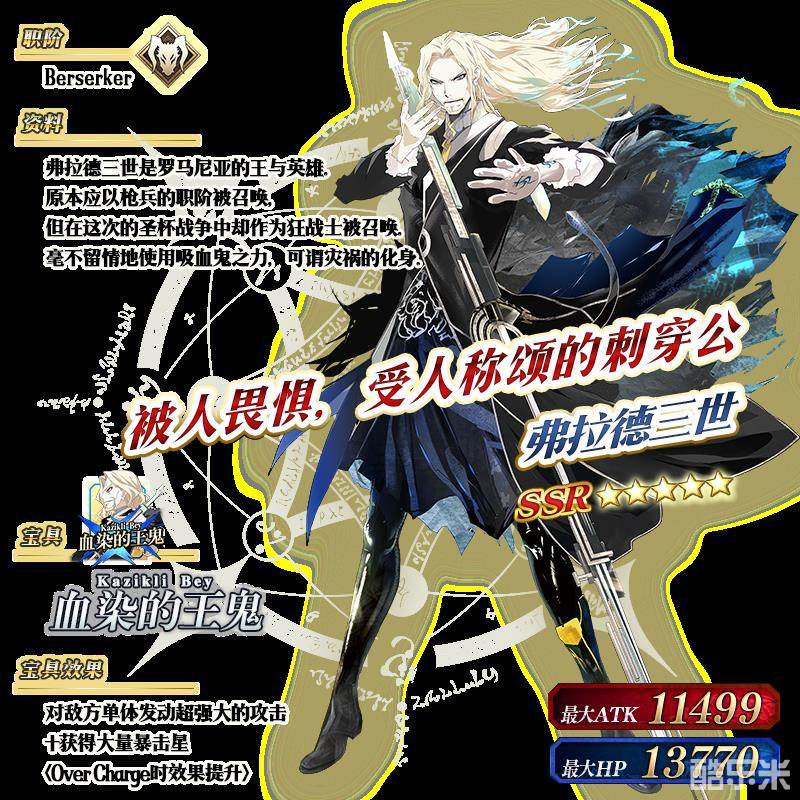 ※以上的「★5(SSR)弗拉德三世(Berserker)」的立绘为灵基再临第2阶段。