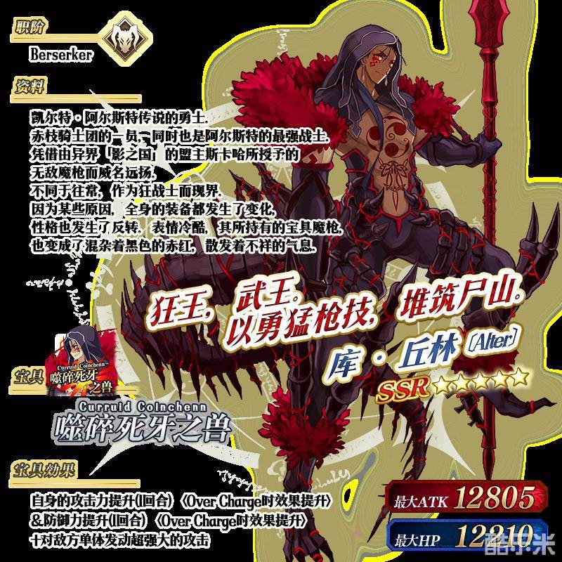 ※以上的「★5(SSR)库·丘林〔Alter〕」的立绘为灵基再临第2阶段。