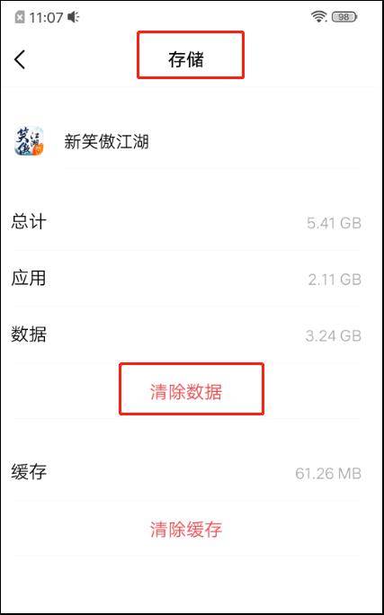 方法一(推荐):进入手机的系统设置——应用管理——选择下载的《新笑傲江湖》游戏应用——存储——删除数据——再次打开游戏应用