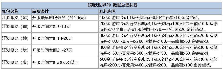 根据参与互通服务器的开服天数差异,系统将在互通前发放对应的礼包奖励。