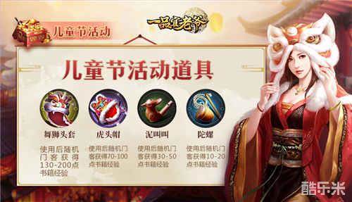 这次的儿童节活动给各位大人带来了不少有趣的小道具,比如陀螺、泥叫叫、虎头帽、舞狮头套,不仅外表有趣可爱,使用后还能随机增加大量书籍经验~各位想要资质冲榜的大人们有了这些道具,又能一举冲上资质榜的首位了~