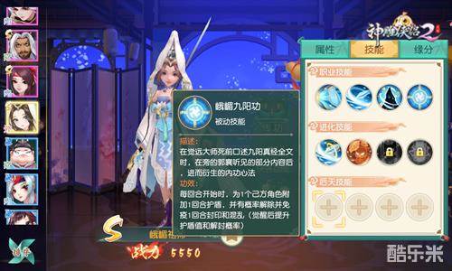 若大侠觉得1个护盾不足以保障己方阵容“站得稳”,那不妨了解下峨眉祖师另一个保障万全的技能“峨眉九阳功”。可以在每回合开始时,为1个己方角色附加1回合护盾,并有概率解除并免疫封印和混乱。护盾强度和解封概率会随着侠客觉醒等级提升而增长。