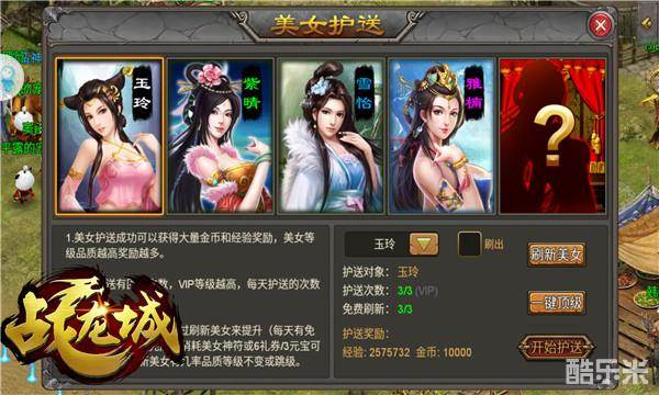 对自己要护送的美女品质等级不满意,则可以通过刷新美女品质来提升成功护送美女所获得的奖励。玩家每天有3次免费刷新美女品质的机会,在免费次数使用完之后,还可以通过消耗美女神符、礼券或者元宝来刷新。
