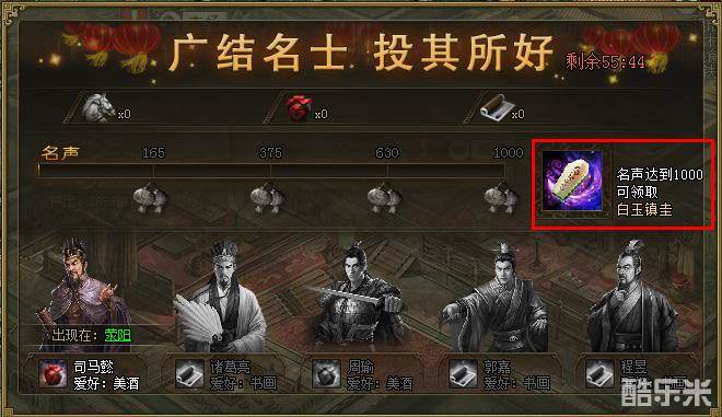 3. 名声累积满了将不再继续增加,名士也将不再刷新活动:财神到,喜从天降好运来!
