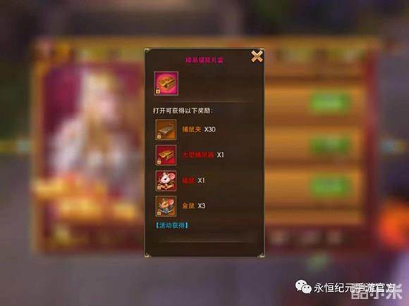 开启臻品福鼠礼盒即可获得捕鼠夹、大型捕鼠器、福鼠、金鼠