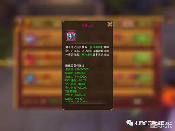 魔神之心是用于进化仙灵装备【异端魔神】魔神之心的道具。进化后可以激活异端魔神套装效果,额外出战更多套装技能!