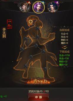 经脉系统介绍:人物等级35级开启,每次消耗10个经脉丹,道具可通过BOSS、关卡奖励、日常副本产出,也可直接从游戏商城购买;