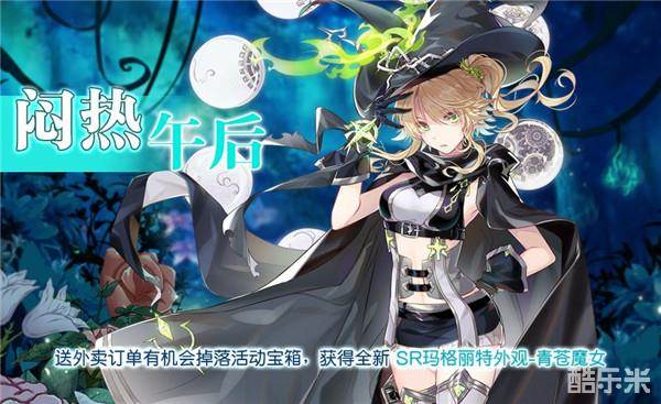 ★活动二 闷热午后★活动时间:6月4日更新后~6月10日23:59活动描述:闷热的天气一点点地剥夺着沐浴后残存的清爽感,如果能寻一处阴凉之地,闭眼小憩,便是最大的慰藉了。活动期间,御侍大人每送出一份外卖有机会获得活动宝箱,活动宝箱在活动界面展示并开启。宝箱有概率获得SR飨灵-玛格丽特碎片,开启指定数量宝箱还可领取全新SR玛格丽特外观-青苍魔女!