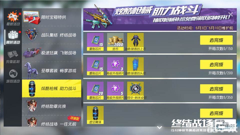 在同步更新的抽枪械补给活动中,玩家抽取枪械补给达到一定次数即可兑换相应道具,例如手雷外观“虚空震荡”、滑翔翼外观“滑翔翼-纳米全息”、男性人物外观“幽影骇客”以及大量重制芯片、高级外观碎片、金币等游戏道具。