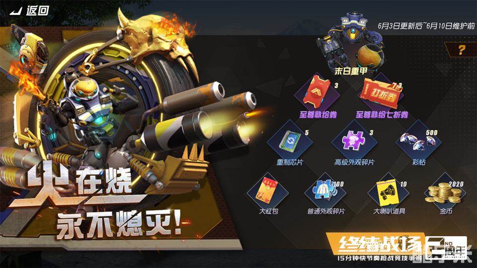 在本周更新后至6月10日更新前,玩家抽取枪械补给还可以获得“末日重甲预装礼包”、大量彩钻、外观碎片、红包、至尊补给券等游戏内道具。