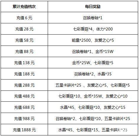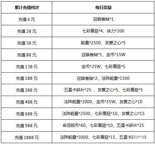 1、每日充值达到相应档次即可拿到相应奖励,活动每日0点重置;