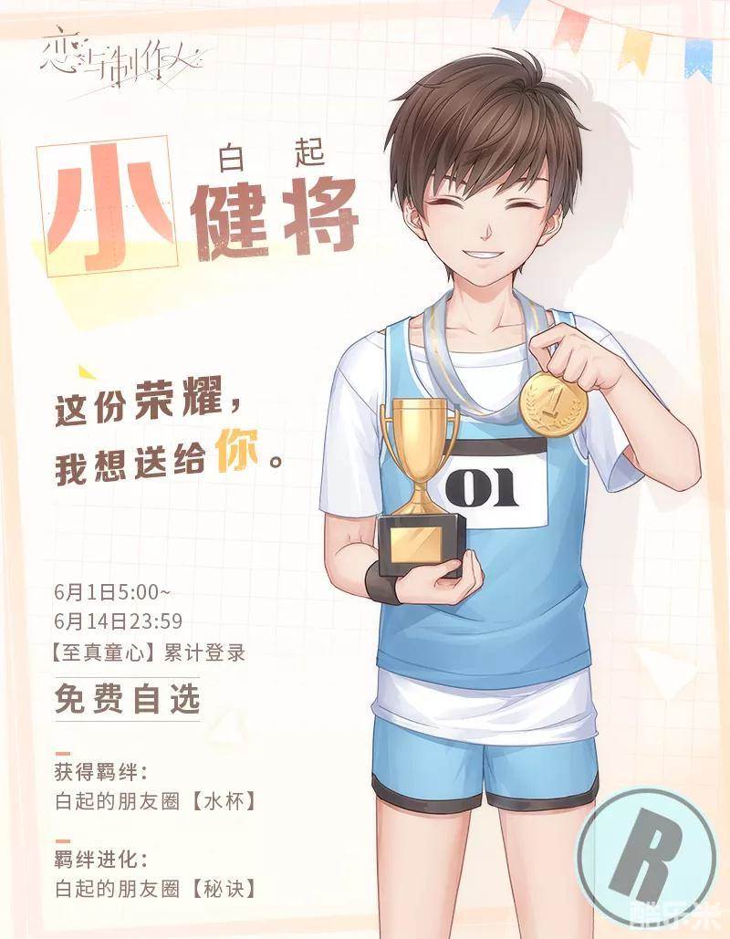 3.累计登录满11天,即可在【周棋洛·小园丁】、【白起·小健将】、【许墨·小博士】、【李泽言·小当家】、【凌肖·小能手】五张童年R羁绊中,任选一张免费领取。