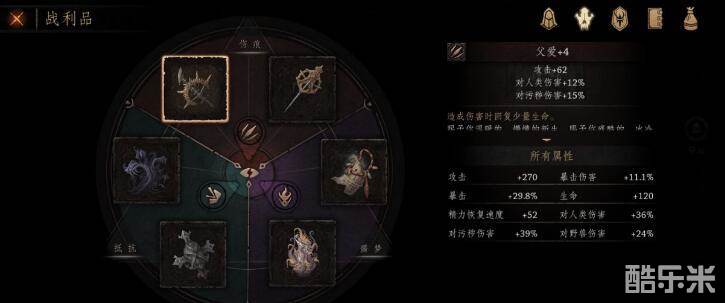 装备可以分为三个类型,分别是伤痕,抵抗,噩梦三种类型,玩家每种类型的装备能带两件。