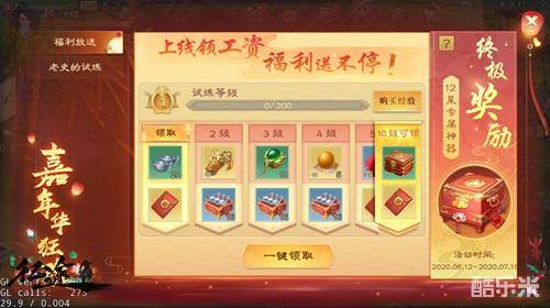 《绿色征途》手游嘉年华版本的另一个重磅玩法,是集各种福利于一身的嘉年华狂欢活动。6月12日起,所有玩家将限时开启“老史的挑战”系列任务,完成任务即可累积活动经验,提升活动等级,领取包括升级宝石、通脉丹、坐骑时装在内的多种豪礼!终极奖励更有12星超级神器放送!