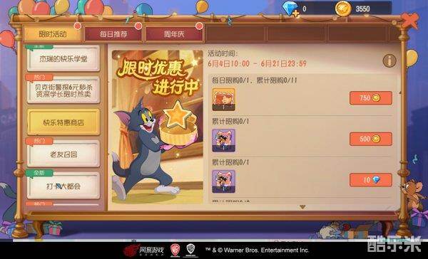 在喜气洋洋的周年庆中,快乐特惠商店限时开启,汤姆为客人们带来了皮肤礼盒、星星、邮票等特惠商品。感人的打折力度,让你以最优惠的价格将心动商品收入囊中。商品限购,售完即止,快快把握机会,享受惊喜折扣吧吧!