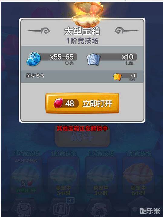 铜箱:得到3张兵种卡牌和金币、宝石;