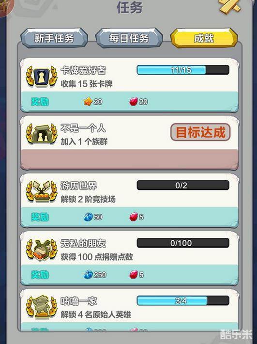 完成成就得到的金币和钻石奖励都是较多的,如加入部落直接得到了100宝石。