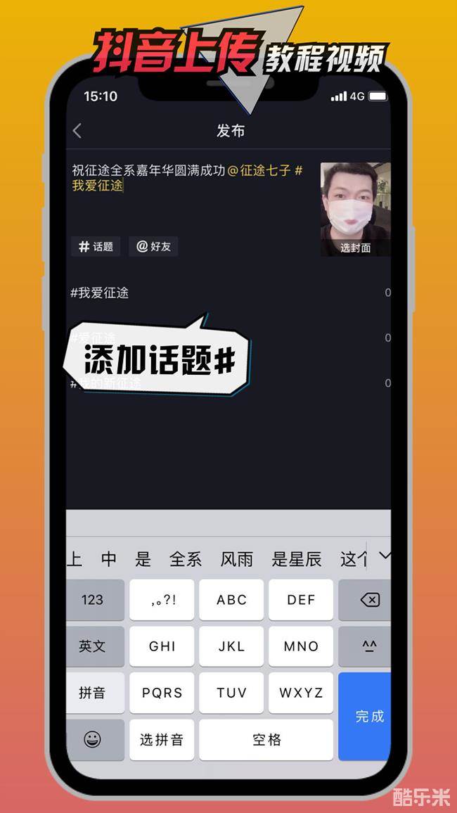 3、选择话题,输入我爱征途