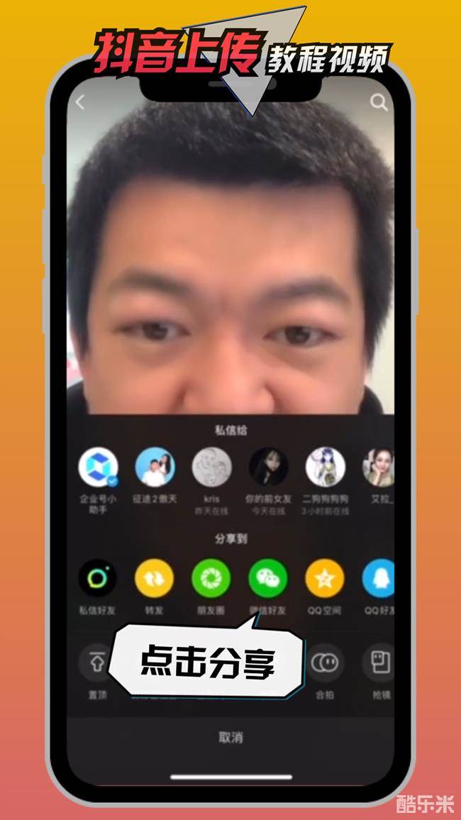 5、分享视频,拉票点赞,通过抖音分享功能,将视频分享给外部群体扩散点赞