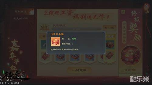 同时,家族宝库也限时开启。家族成员每天做做任务就能为家族贡献积分,用以解锁宝库奖励,家族成员能消耗积分从宝库中随机抽取物品。其中,不限量的奖品有·00颗冲穴丹、绿令牌、精英将魂等,天选之子则能抽到10星、11星装备、5级天/地魔石、紫色武将、紫色马头,和多种时装豪礼!