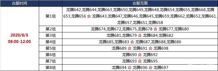 《龙腾传世》安卓端将于2020年6月5日09:00-12:00进行合服操作,游戏将无法进行登录,请各玩家合理安排游戏时间,避免造成不必要的损失。根据合服进度,维护时间将提前或延后完成哦,请悉知。