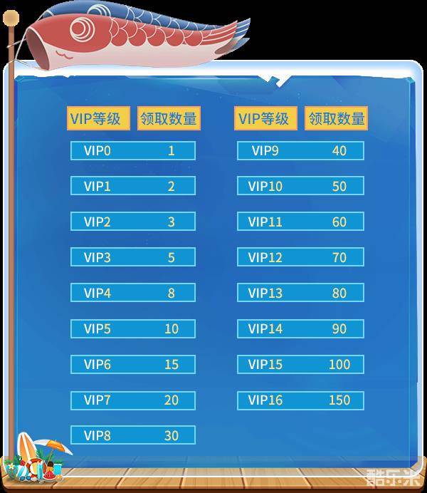 活动期间,所有玩家登录即可领取奖励!VIP玩家可根据VIP等级领取额外份数的奖励!
