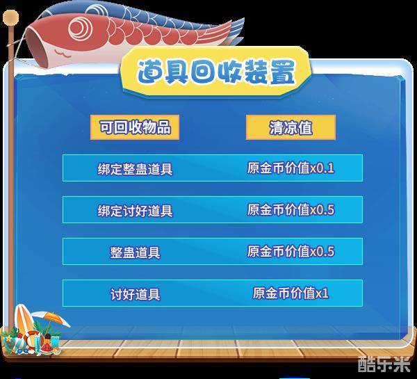 活动期间,在“道具收集装置”中投入指定道具,即可获得不同“清凉值”: