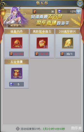 活动期间将开放五谷商店,各位魂师可消耗五谷锦囊购买各类珍稀道具、各位魂师同样可以消耗少量钻石,购买五谷锦囊道具。
