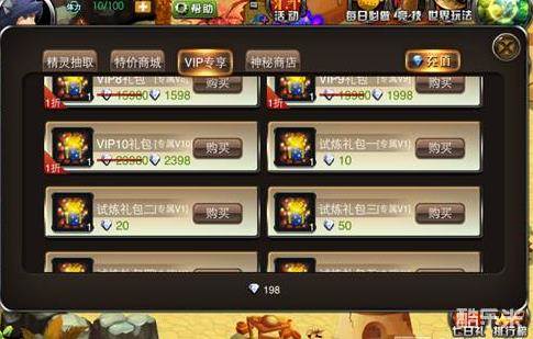 除了一次性的 vip0和vip1礼包可以购买以外,最重要的是我们可以在这里直接用钻石购买试炼礼包。每个试炼礼包里都可以开出相应的试炼入场券,在相应的试炼场景里只要通关,都可以获得精炼石、特训药剂或者钻石包的其中一样。