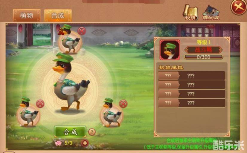 2)合成分为主萌物和两只辅萌物,合成的萌物继承主萌物的形象、升级属性;