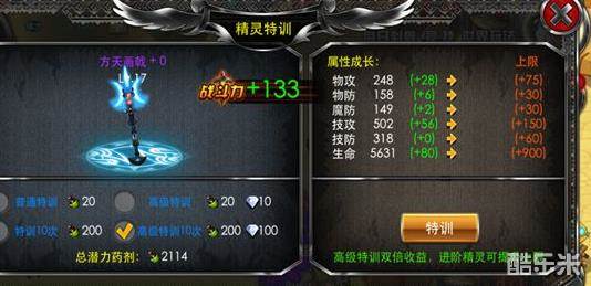 通过特训来提升精灵的基础属性值,从而提高精灵的战斗力。精灵特训提高的属性值是随机出现的,比较坑爹。对于战斗力的提高也不能起到立竿见影的效果。
