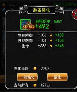 主角拥有6个装备栏,大家可以为主角收集强悍的装备穿戴和为装备进行强化。与精灵装备强化一样,主角更换装备与强化,提升战斗力的幅度还是很大的。如果被卡副本,千万要记得为主角进行强化噢。