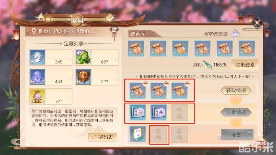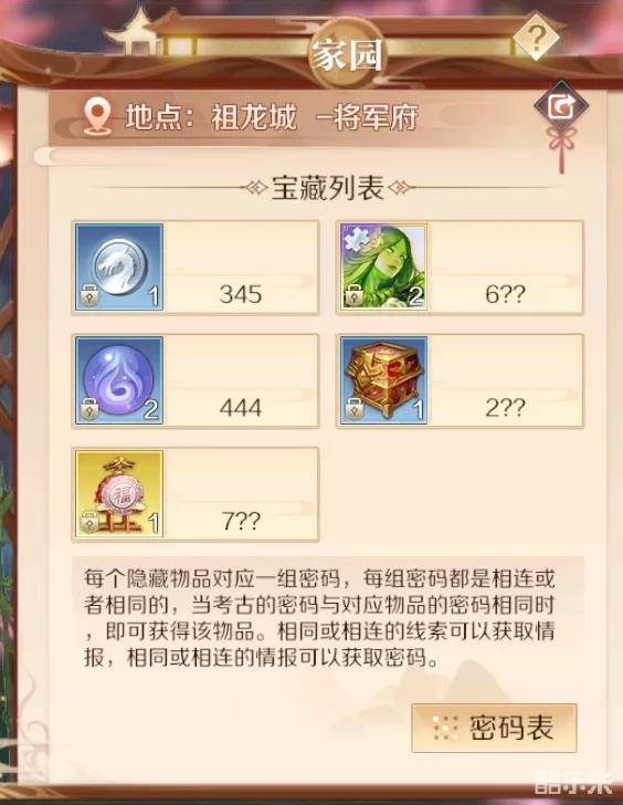 三个数字情报之后,也是以相同的规则再生成下一层的密码数字,最后可以通过组合正确密码获得列表里的宝藏。