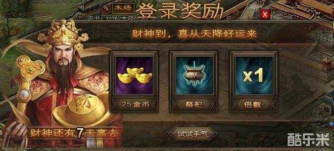 累计充值满1000金币,可获得财神降临buff,每日登陆奖励金币变为固定25金币,持续7天