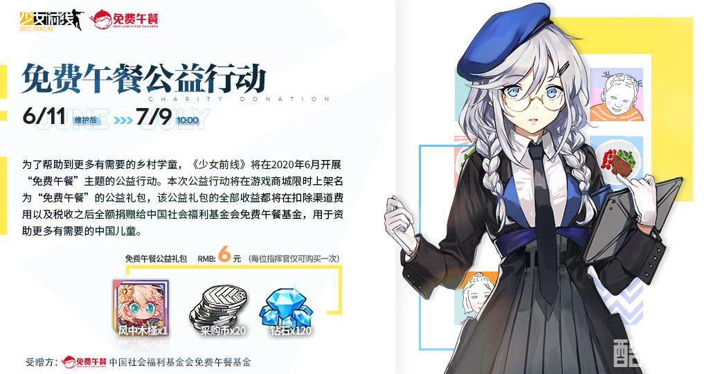 为了帮助到更多有需要的乡村学童,《少女前线》与中国社会福利基金会免费午餐携手,共同开展“免费午餐”主题的公益行动!本次公益行动将于6月11日维护后在游戏商城内限时上架名为“免费午餐”的公益礼包,该公益礼包的全部收益都将在扣除渠道费用以及税收之后全额捐赠给中国社会福利基金会免费午餐基金,帮助更多的孩子健康成长!