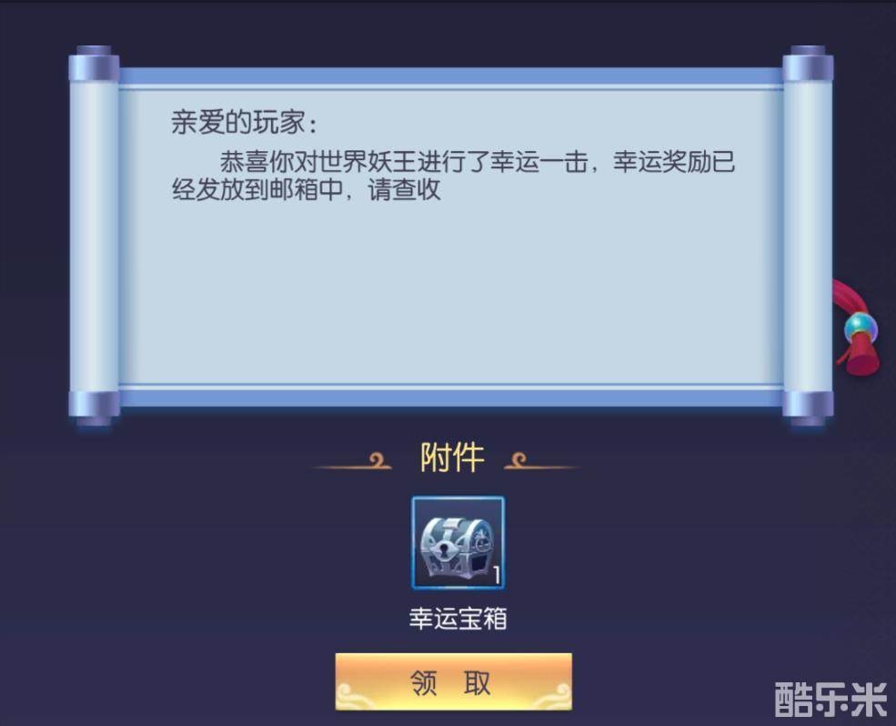 每次战斗结束时,凡是参与战斗的玩家都有机会获得幸运宝箱奖励。开启宝箱后有概率获得宝箱内某一道具。