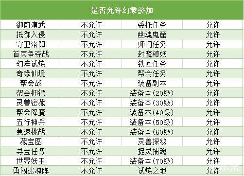 幻象并不是所有活动都能参加,例如御前演武、首席争夺战等PVP玩法以及各类挑战活动均无法参加。若我们携带幻象参与限制的副本时,将弹出提示踢出幻象并“一键喊话”邀请真实玩家进行匹配。