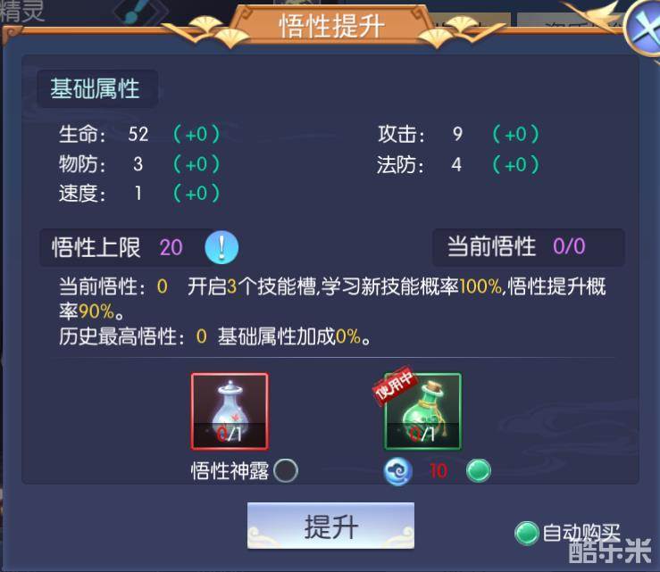 总之,提升悟性非常重要,即使提升失败也不影响基础属性加成,悟性神露极其宝贵务必珍惜使用。