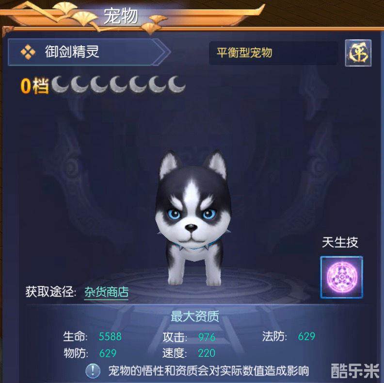 0档 御剑精灵:一只蠢萌的二哈,开局会赠送一只。