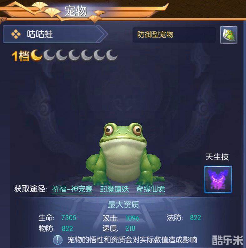 天生技能介绍:灵兽常驻技能:提升自己和主人的幸运值各10点。