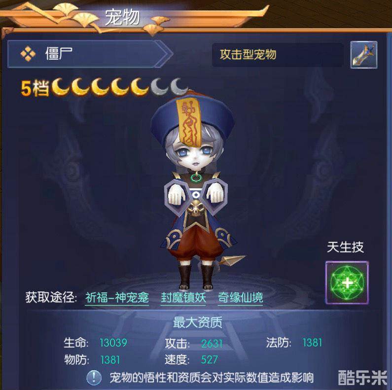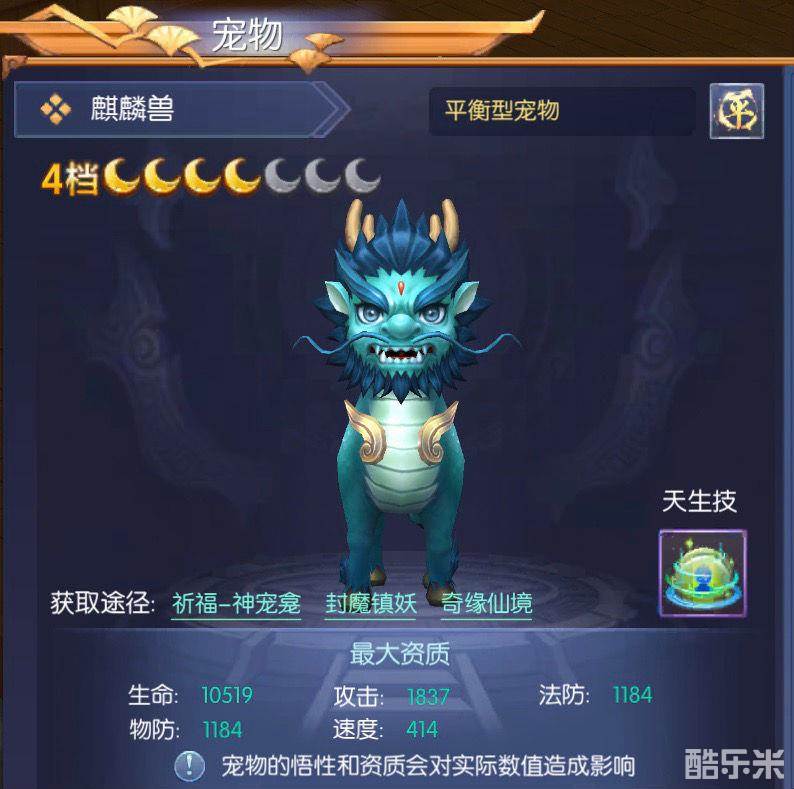 天生技能介绍:神州的祝福常驻技能:宠物的攻击、物防、法防、速度、生命上限提高5%。