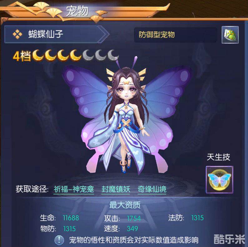 4档 蝴蝶仙子:飘着的,有颜、好看(天生技能 给自己和主人加速度,还是比较好的)