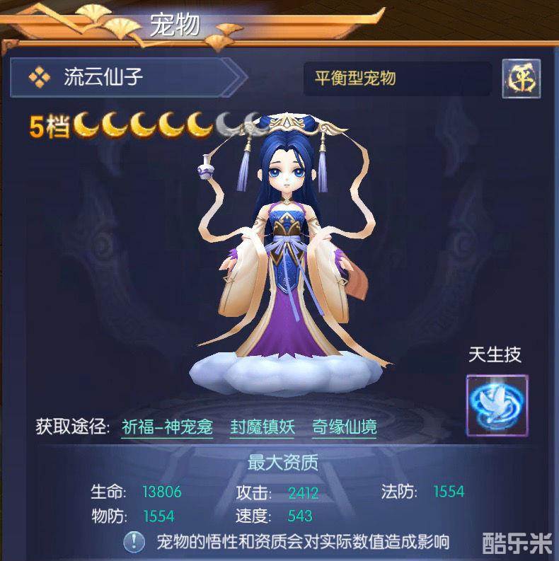 5档 流云仙子:养眼,宠物看起来比人物还大一点,还是美的(就是天生技能有点鸡肋)