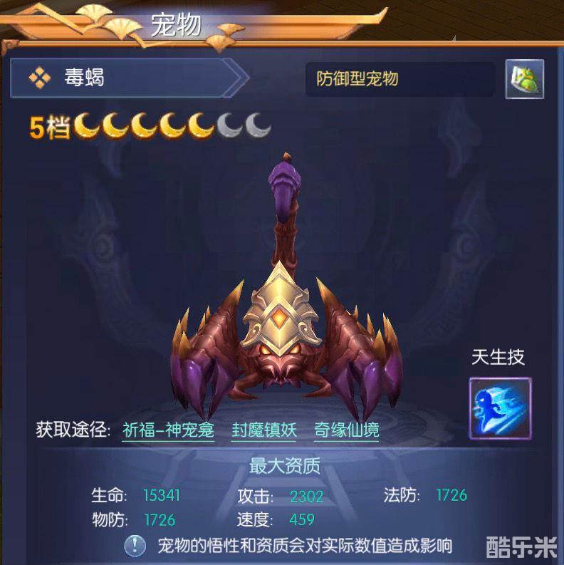 天生技能介绍:毒皮常驻技能:提高宠物自身状态属性10点。