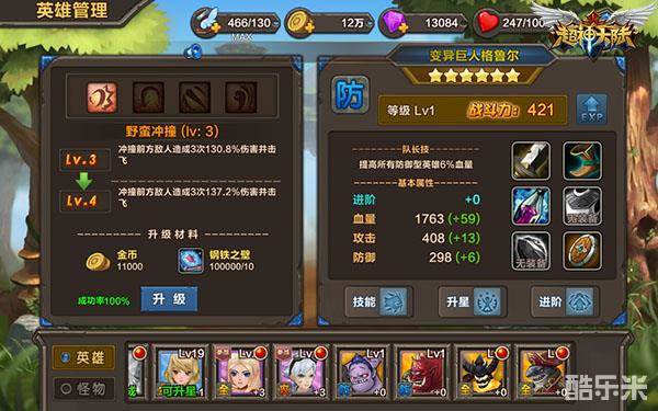 英雄属性下的技能可以在不同时间段升级提升,增强英雄带来的攻击力。