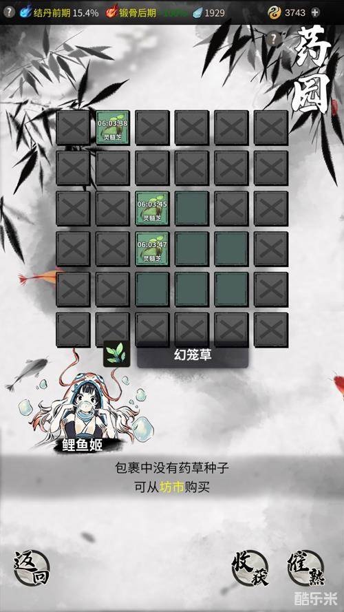 我学着药童的样子将手上的灵髓芝和幻笼草泼撒在几块地里,并用土埋好。药童拍了拍手里的土尘,开心的说道:“幻笼草的生长期短,约莫过几个时辰就可以收获咯!别小看这一颗颗灵珠,它们有的不仅够作为炼器辅材,增加你炼制极品装备的概率;有的也能当做一些稀有丹药的材料......”药童还在不停地说,而我却只记得“几个时辰”这四个大字:“啊!需要这么久?有没有速成肥料呀?!”