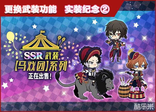 为了庆祝这一系统上线,在活动期间,会免费赠送SSR级别的武装【马戏团】中岛敦!身着小丑服饰表演马戏的敦仔也是异常可爱,快为你的敦仔换上新衣吧~同时【马戏团】系列武装:太宰治、芥川龙之介、中原中也也会上架商城,不如组合一队“马戏组合”,在副本中展开奇妙探险!