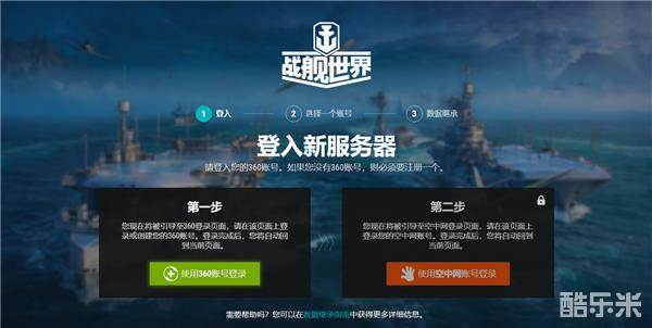 2、成功登录360账户后,还需登录原战舰世界账号,以便系统识别账号信息及同步游戏进度。然后选择想要继承的南区或北区角色,此时玩家可直接查看不同大区角色当前的金币、高级账号等状态信息,帮助你进行正确选择。