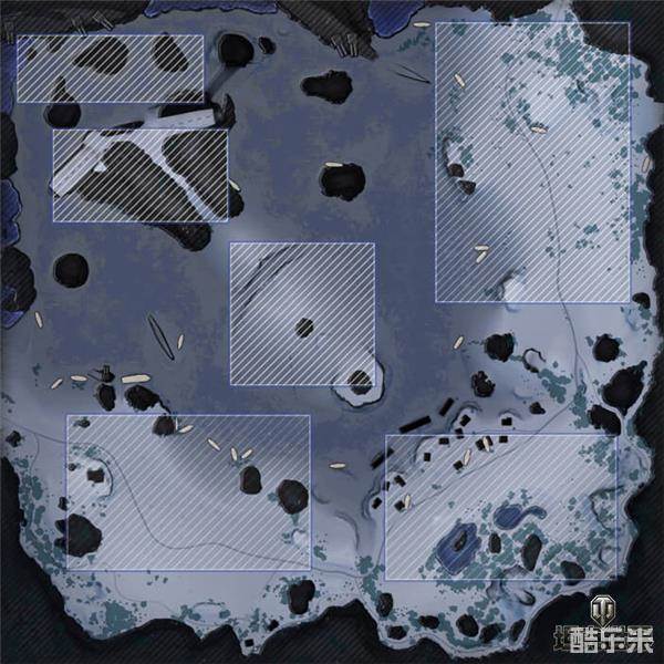 地图的西北角拥有冰冻沉船和浮冰为你提供天然的掩护,是一个相对安全的避难所。对于装甲薄弱或擅长从远处造成伤害的车辆来说,地图东北方和西南方有着为数可观的藏匿地点,并拥有上佳的观察位置,便于你监视敌方的行踪。而东南方拥有着丰富的灌木丛,能让歼击车获得不错的输出位置,发挥更多优势。