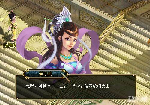 接下来我们进入王母娘娘的瑶池宫,此宫殿中不仅有朝云、望霞两位王母侍女,还有替王母掌管蟠桃园的女使董双成,不仅长相温婉大方,又能歌善舞,善吹笙,通音律,深得西王母的喜爱。于商朝灭亡后于西子湖畔修炼成仙,在《问道》中的位置,也是离王母最近的一个仙女。
